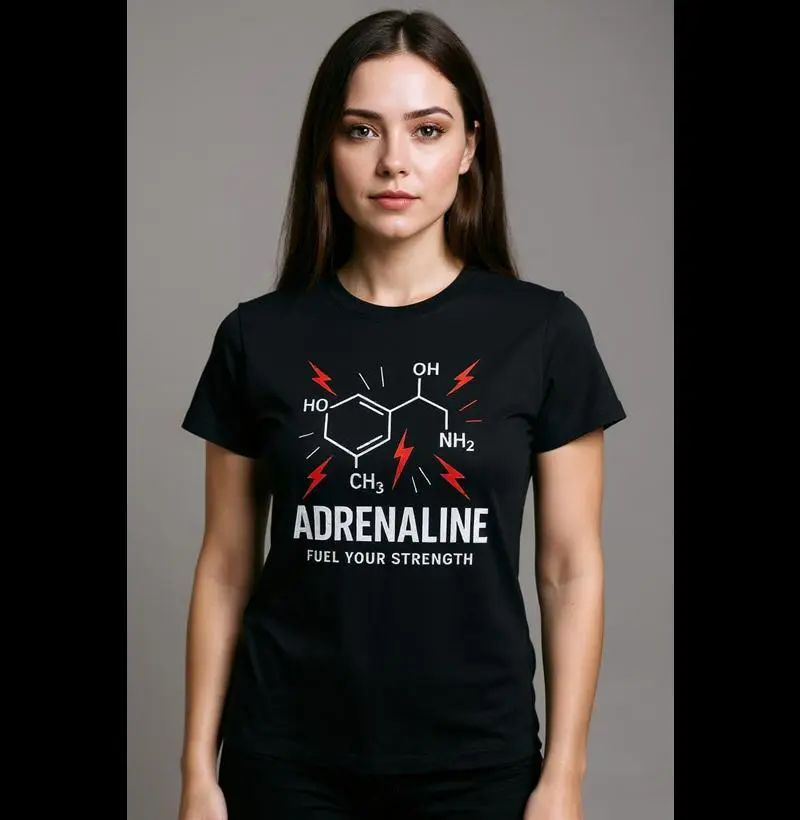 Essa é a camiseta de quem vive no modo full gas: a fórmula química da adrenalina explodindo com raios vermelhos representa exatamente aquele pico de energia que toma conta quando você coloca mais uma anilha, quando fecha o último supino pesado ou quando entra no tatame sabendo que hoje vai rolar até o fim. É para quem sente o coração disparar antes da série decisiva, para quem transforma medo em força e cansaço em vitória. Perfeita para homens e mulheres que treinam musculação, bodybuilding ou jiu-jitsu com intensidade, dos 20 aos +50 anos – porque adrenalina não tem idade, tem atitude.