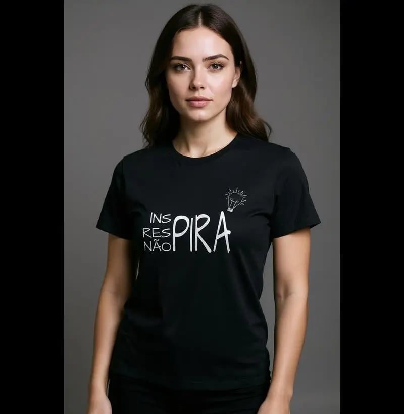 • O Seu Foco Começa no Fôlego. A camiseta "Inspira, Não Pira!" é o lembrete inteligente e bem-humorado de que o treino mais importante acontece na sua cabeça. Com um trocadilho visual e a lâmpada (ideia/clareza), essa peça fala com quem entende que a força mental e o equilíbrio são a chave para a superação.